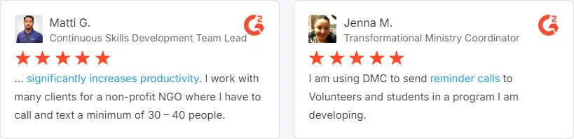 “I am a youth minister and have spent hours in the past calling students individually to remind them of an upcoming event or to get out an urgent announcement. With DialMyCalls.com, I cut that time down to about 1 minute. I also love how I can see exactly who answered live and how long they listened so I know if they heard the whole message. DialMyCalls.com is the best website I have stumbled upon all year! Thanks!”