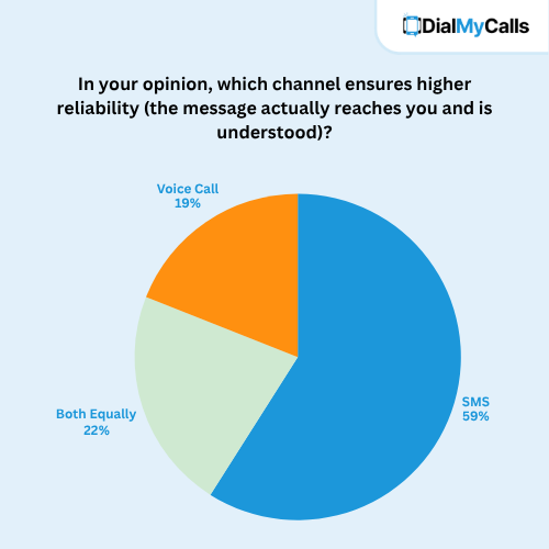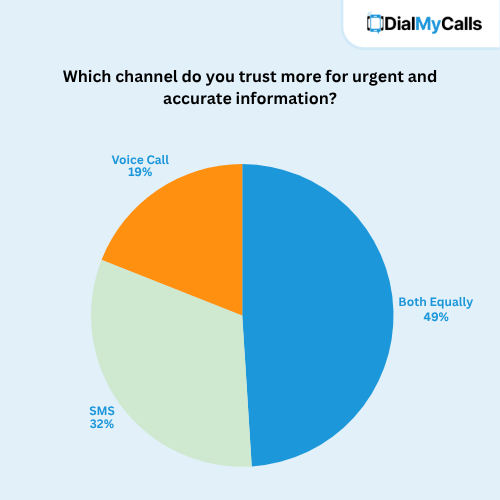 While text messages are faster to read, calls still hold the edge in perceived importance. In the survey, 32% trust SMS for urgent and accurate information, 49% trust both equally, and 19% trust voice calls more.