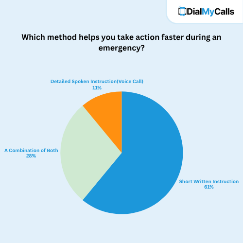 Meanwhile, 61% said they act faster when they receive short written instructions via SMS, but 28% said they move fastest when alerts combine both channels. A smaller share, 11%, preferred detailed spoken instructions by voice call.